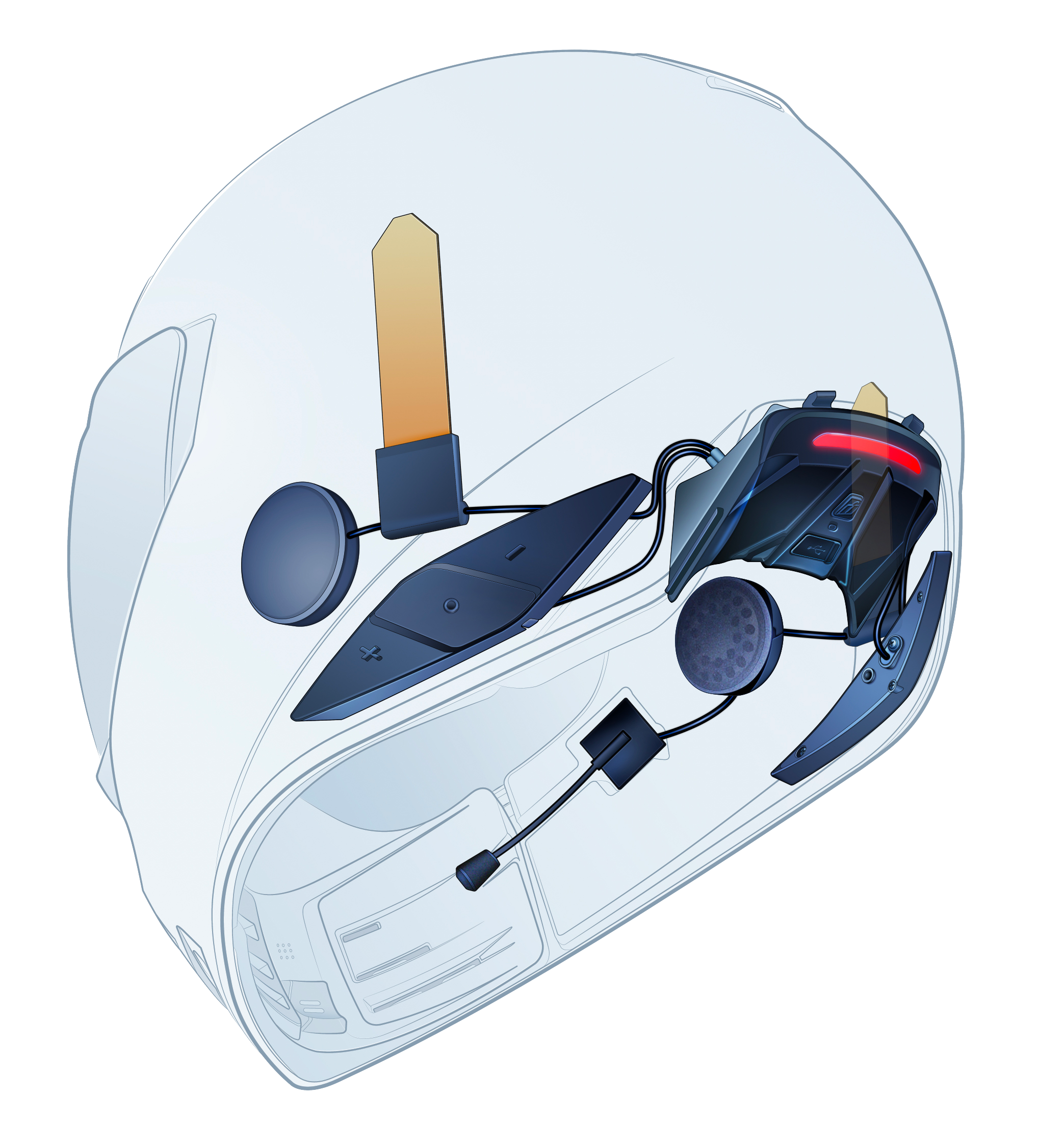The HelmLink™ Communications System integrates seamlessly into the ICON Domain, Elsinore, and Ultraflite helmets and includes the latest SENA technology. It features Bluetooth™ audio, voice-activated digital assistant access, and One-Click-to-Connect Mesh Intercom™.