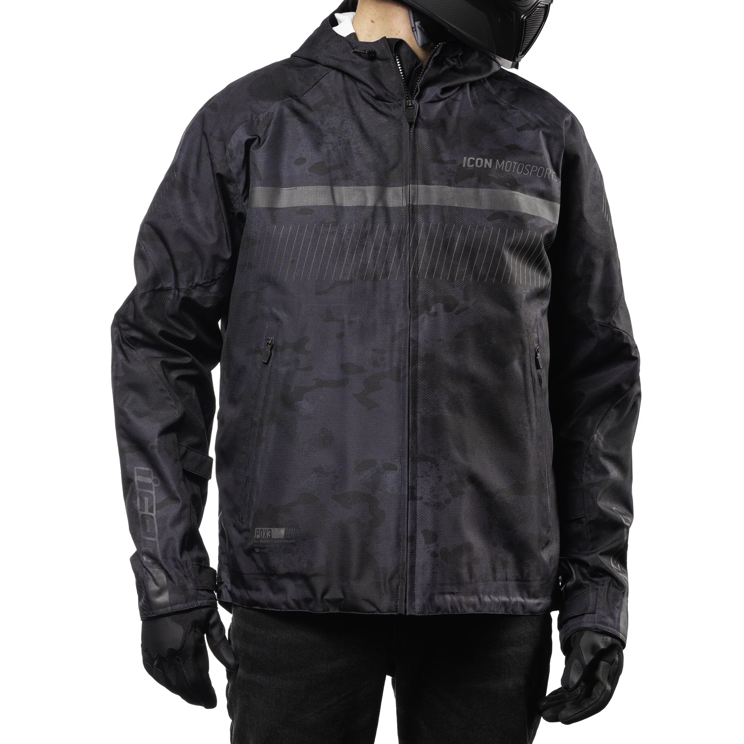 Raised on the rain-soaked streets of Portland, the ICON design team knows a few things about wet weather riding. The CE-certified PDX3, named after our home city, combines the necessity of a fully-taped waterproof/breathable shell with premium D3O impact protectors in the elbows, shoulders, and back. In addition, the pit zips provide additional venting ability while the hood rolls up for riding.